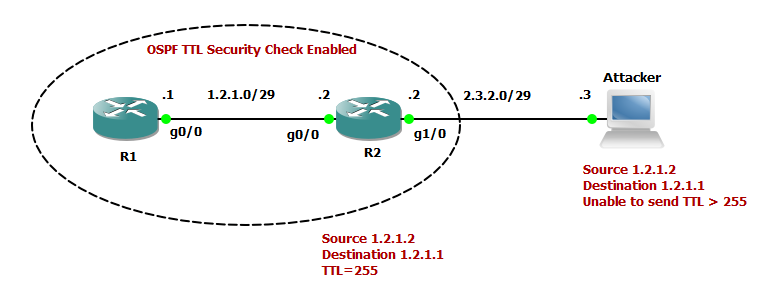 启用此功能后,OSPF将仅接受TTL为255的数据包,拒绝任何TTL小于配置阈值的数据包。