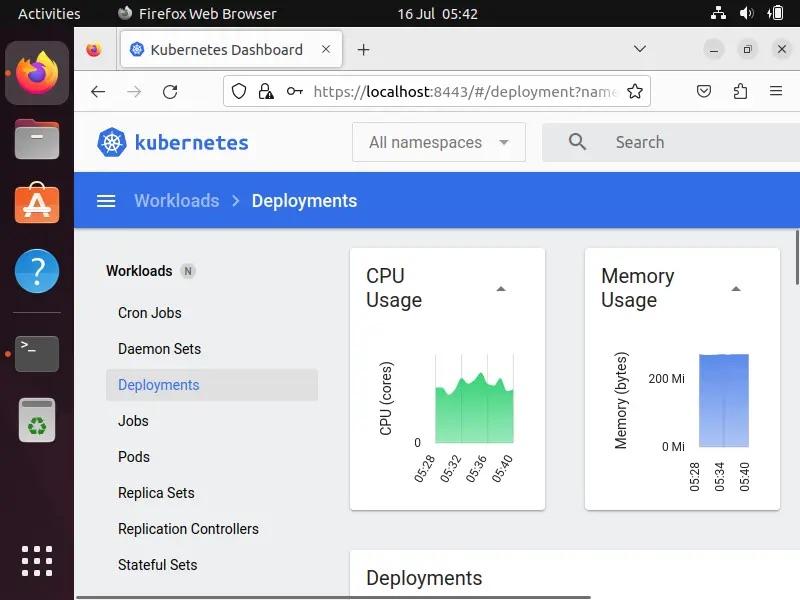 - 工作负载:查看和管理你的部署、副本集、有状态集和守护程序集。