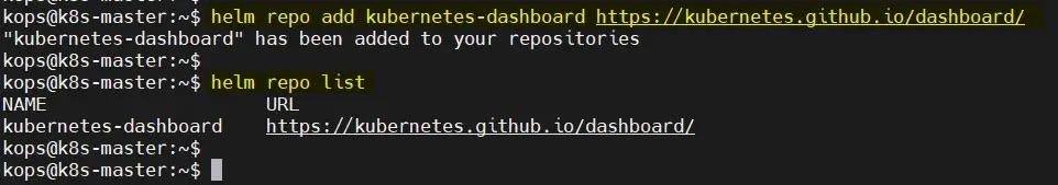 $ helm repo add kubernetes-dashboard https://kubernetes.github.io/dashboard/