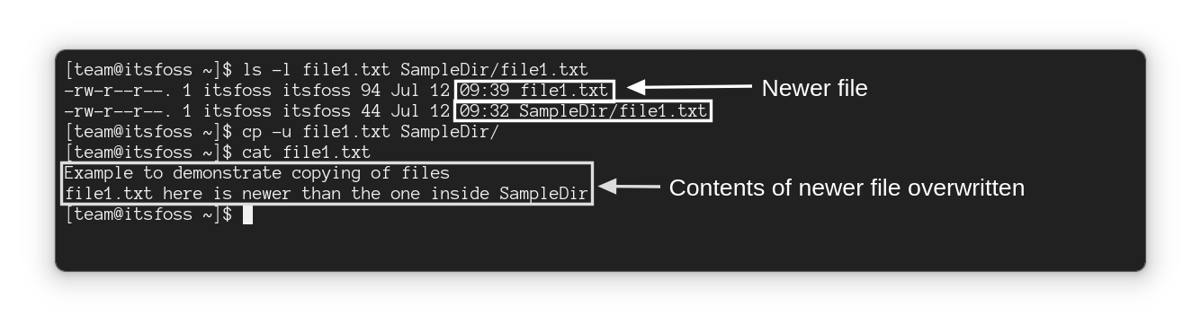 最后,还有一个“更新”选项 -u,如果目标文件比源文件旧,或者目标文件不存在,就会被覆盖掉。