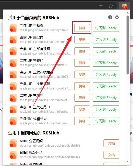 - 以 B 站为例,对于想要获取 RSS 订阅的内容,如某个博主,只需要达到该博主主页复制即可:
