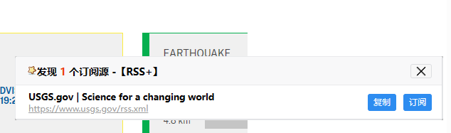 以 USGS 为例,打开官网后可以在网站右下角找到对应的 RSS 订阅源。