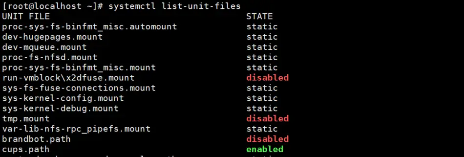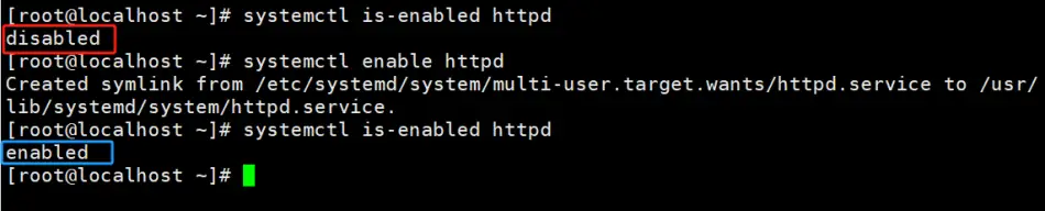 看输出结果,就知道是否是开机启动,enabled 代表开机启动,disabled 代表开机不启动