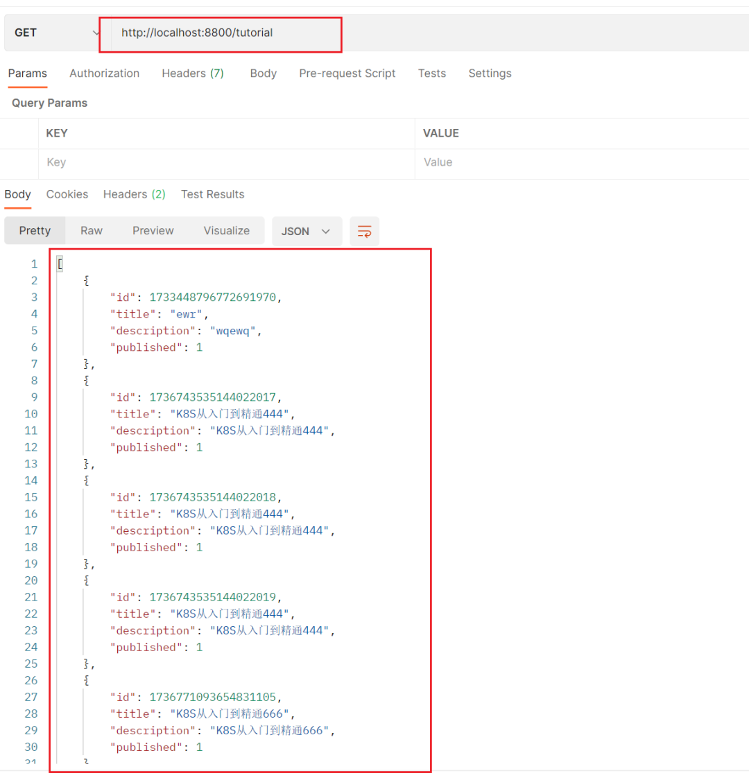 DELETE请求 http://localhost:8800/tutorial/{id}进行测试