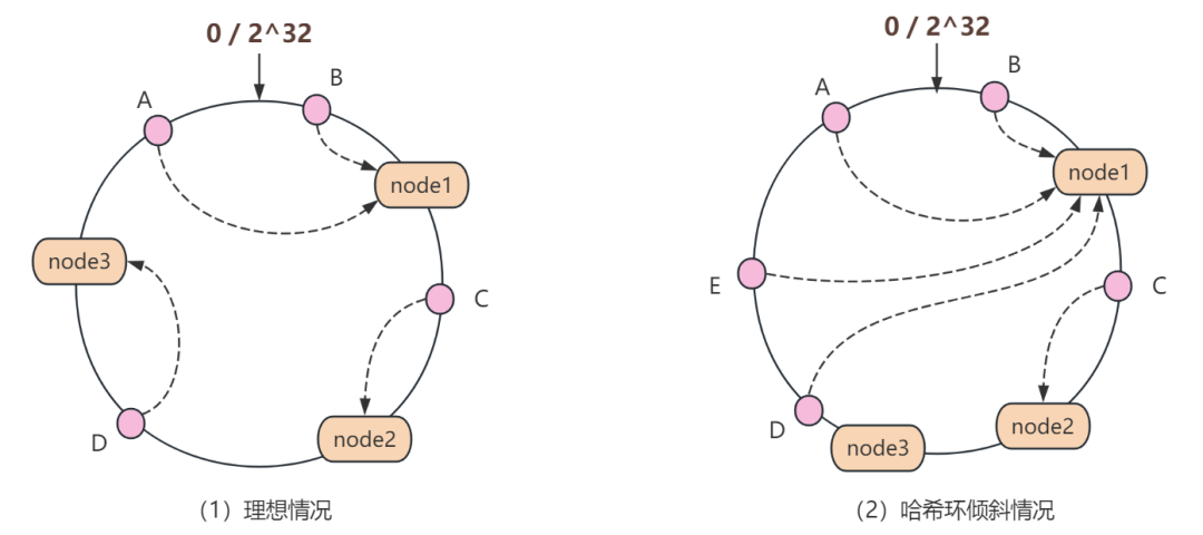 当然,这个算法也有它的缺点。有时候,所有人似乎都想停在同一个车位上,这就造成了负载不均,即哈希环倾斜的情况。