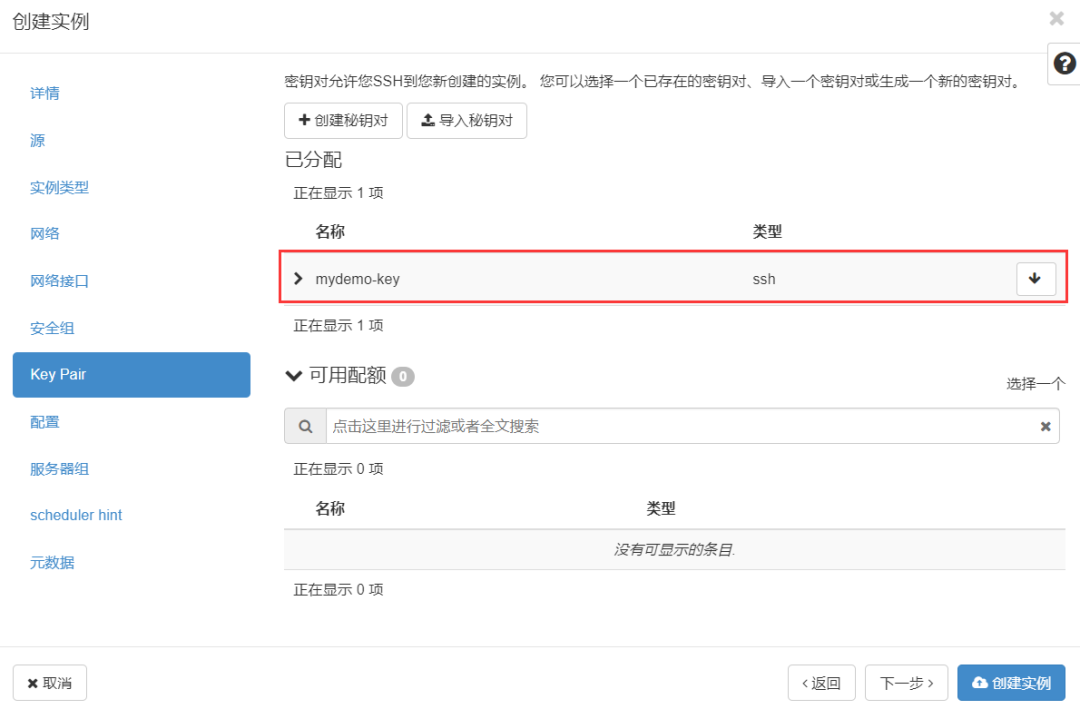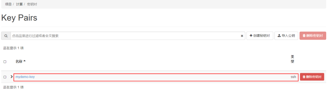 密钥对是虚拟机实例启动时被注入镜像中的SSH凭据,每个项目可以定义自己的密钥对。