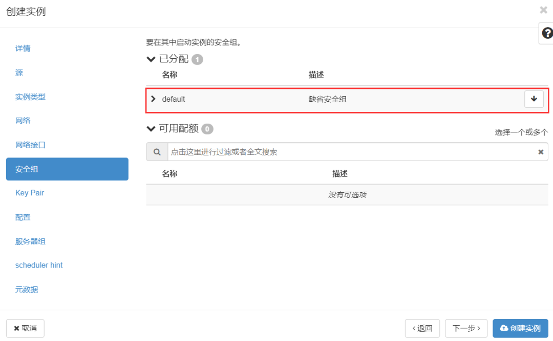 安全组中的规则用于控制被关联的实例的网络通信,每个项目可以定义自己的安全组,然后将虚拟机关联到安全组。