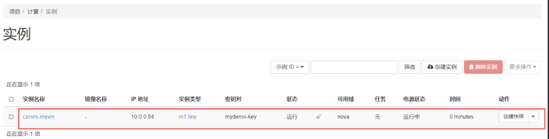 其他保持默认,然后点击创建实例,完成实例的创建,如下: