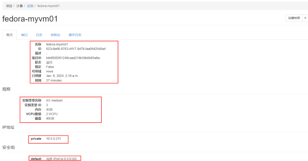 可以看出默认系统一个外部网络(public)和一个内部网络(private):