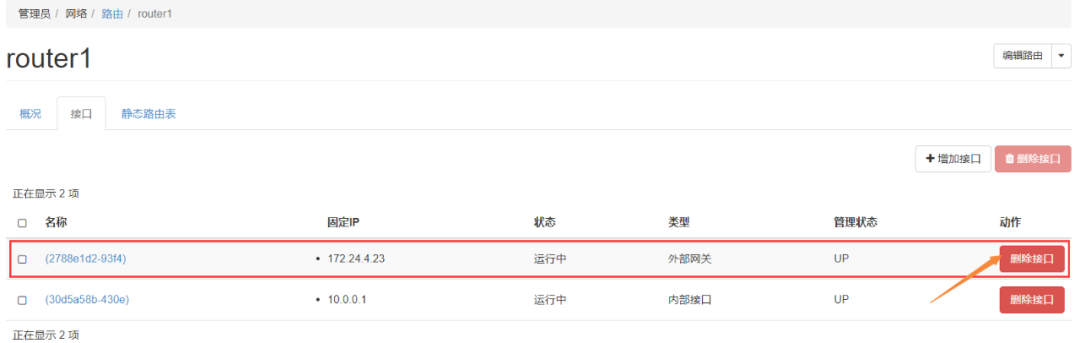 由于默认外部网关172.24.4.23不符合实际情况,这里先删除掉: