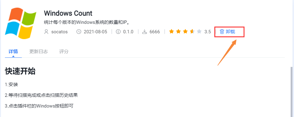 有了扩展插件,可以很方便处理很多事情,这里以安装WINDOWS Count为例,该插件进行统计每个版本的Windows系统的数量和IP,先选择左侧插件商店列表中的插件,然后右侧点击下载,下载完成后会自动安装: