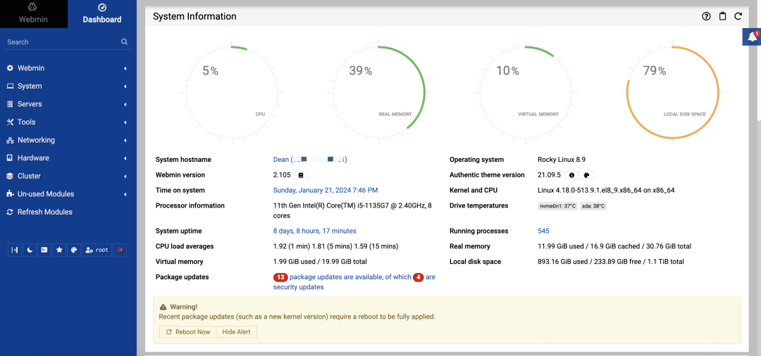 1月 21 18:48:22 Dean systemd[1]: Starting Webmin server daemon...