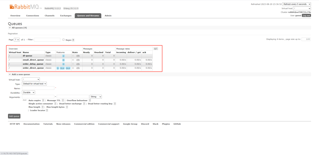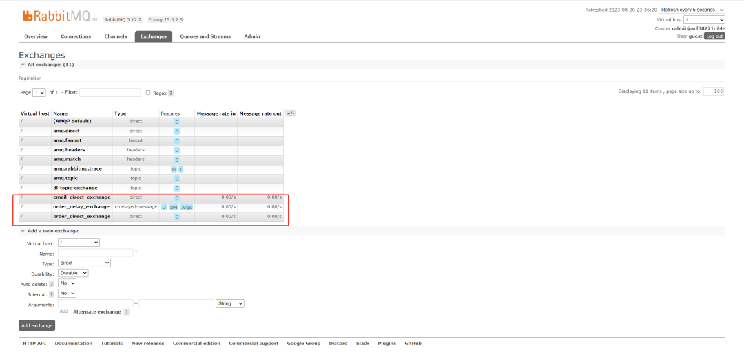 在 Spring 项目中,项目启动时,就会自动在 RabbitMQ 服务器上创建好这些东西。