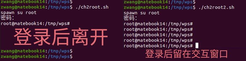上面的脚本在切换到root之后就退出root终端了,如果希望保留在root终端内,需要对脚本的最后两行进行修改(文件ch2root2.sh):