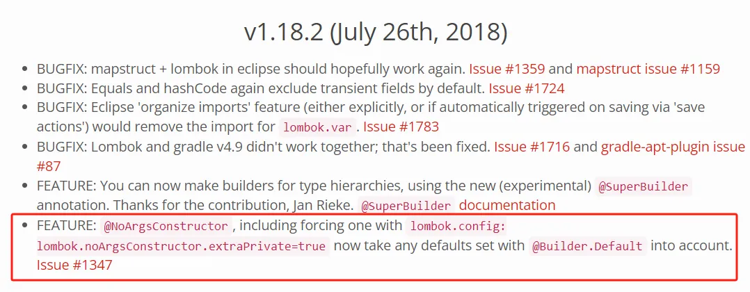 作者可能也没想到,大家在使用的时候会把 @Builder 和 @NoArgsConstructor 两个注解放在一起用。