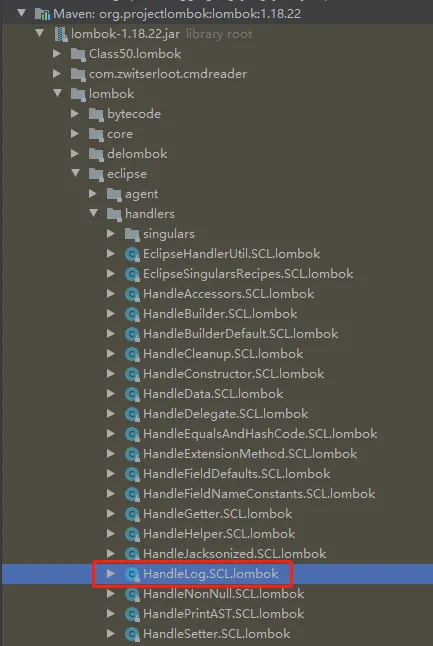 log 相关注解的源码位于这个部分,可以看到很奇怪啊,这些文件是以 SCL.lombok 结尾的,这是什么玩意?