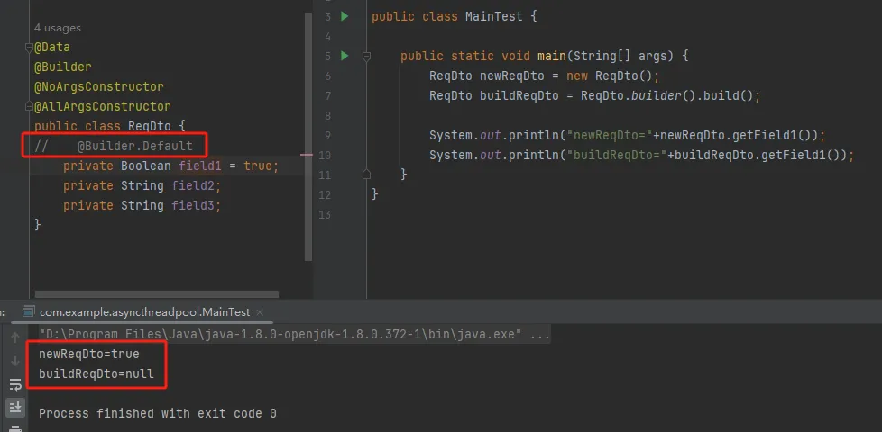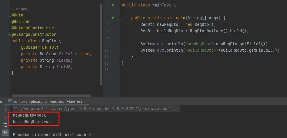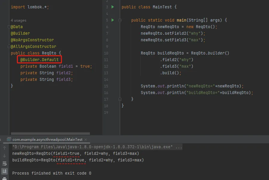 但是加上 @Builder.Default 注解,运行结果会变成这样: