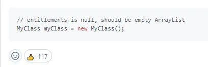 按照 Java 规范来说,我们附了默认值的,调用 myClass.getEntitlements() 方法返回的肯定是一个空集合嘛。