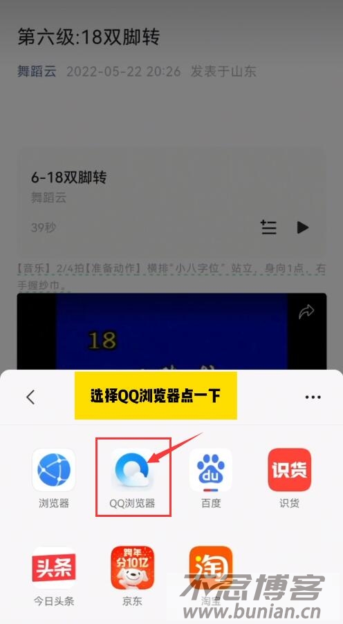 3、那么这里会出现一些浏览器选项,这里我们需要选择“qq浏览器”(目前小编发现只有qq浏览器才能完成下载,如果没有qq浏览器的朋友需要预先下载一个哦)。![微信公众号视频怎么下载?(亲测可行详细下载步骤) 图片[4]-微信公众号视频怎么下载?(亲测可行详细下载步骤)](https://www.bunian.cn/wp-content/uploads/2024/03/7-3.jpg)