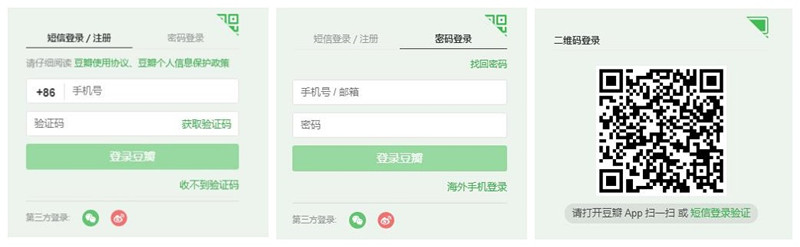 豆瓣提供了多种登录方式: