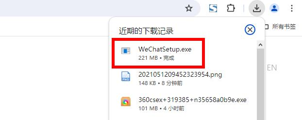 第二步:点击下载按钮,第一个就是下载的微信文件夹,点击进行安装。