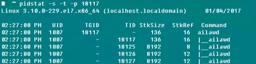 -s:栈使用状况,包括 StkSize 为线程保留的栈空间,以及 StkRef 实际使用的栈空间。使用ulimit -s发现CentOS 6.x上面默认栈空间是10240K,而 CentOS 7.x、Ubuntu系列默认栈空间大小为8196K