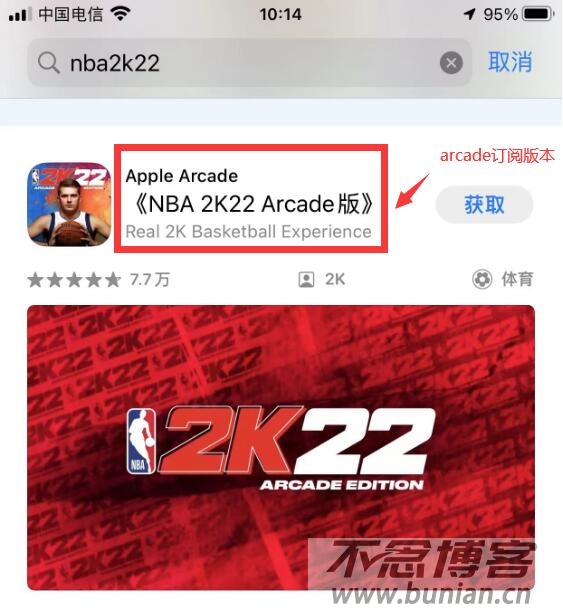 3、在App Store里面搜索“nba2k22”,看见如下图所示的带arcade订阅的就是官方正版,别的都不是。