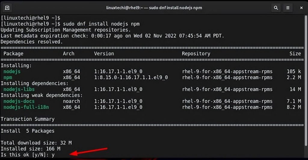 ![如何在RHEL9系统中安装Node.js? 图片[9]-如何在RHEL9系统中安装Node.js?-不念博客](https://www.bunian.cn/wp-content/uploads/2022/11/image-162-1024x181.jpeg)