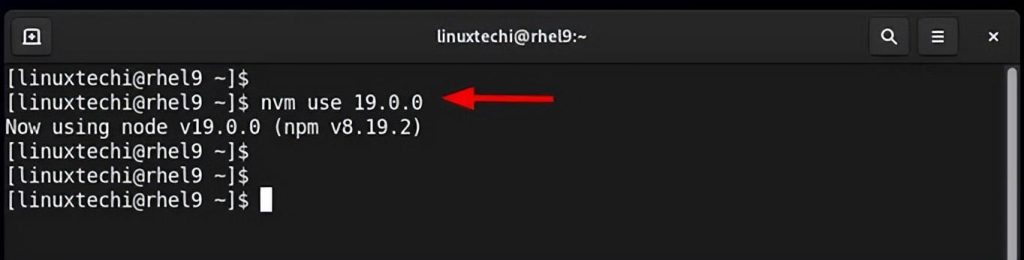 例如,要使用 Node 版本为 19.0.0,运行以下命令