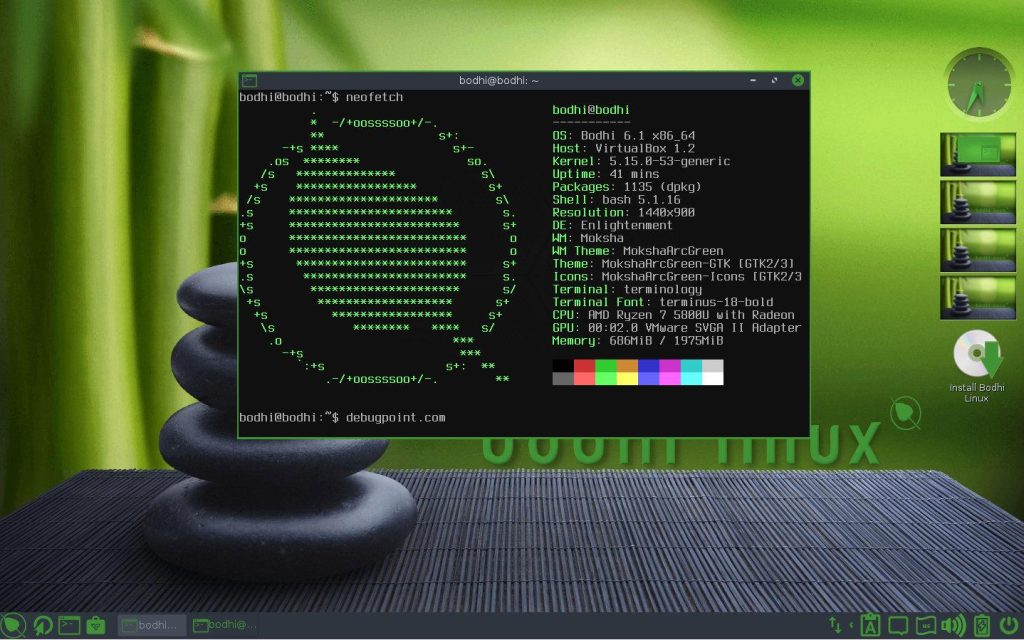 Bodhi Linux 基于 Ubuntu LTS,其带有基于 Enlightenment 的 Moksha 桌面环境。Moksha 桌面是轻量级的,同时也是一个养眼的桌面。此外,它只包括了可以让你开始使用的基本的应用程序。