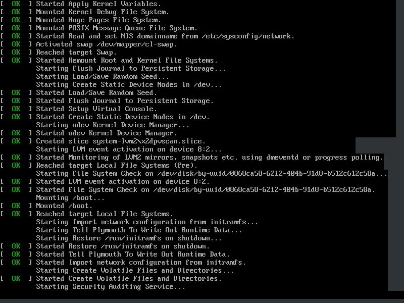 systemd加载所有守护进程并设置目标或运行级别值,引导过程就会结束。此时,系统会提示您输入用户名和密码,然后您就可以进入 Linux 系统。