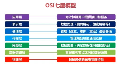 OSI七层网络模型是一种将计算机网络体系结构按照功能划分为七层的标准模型。这个模型的目的是为了确保不同厂商的计算机和网络设备能够相互兼容和通信,同时为网络协议的设计和开发提供一个标准的框架。