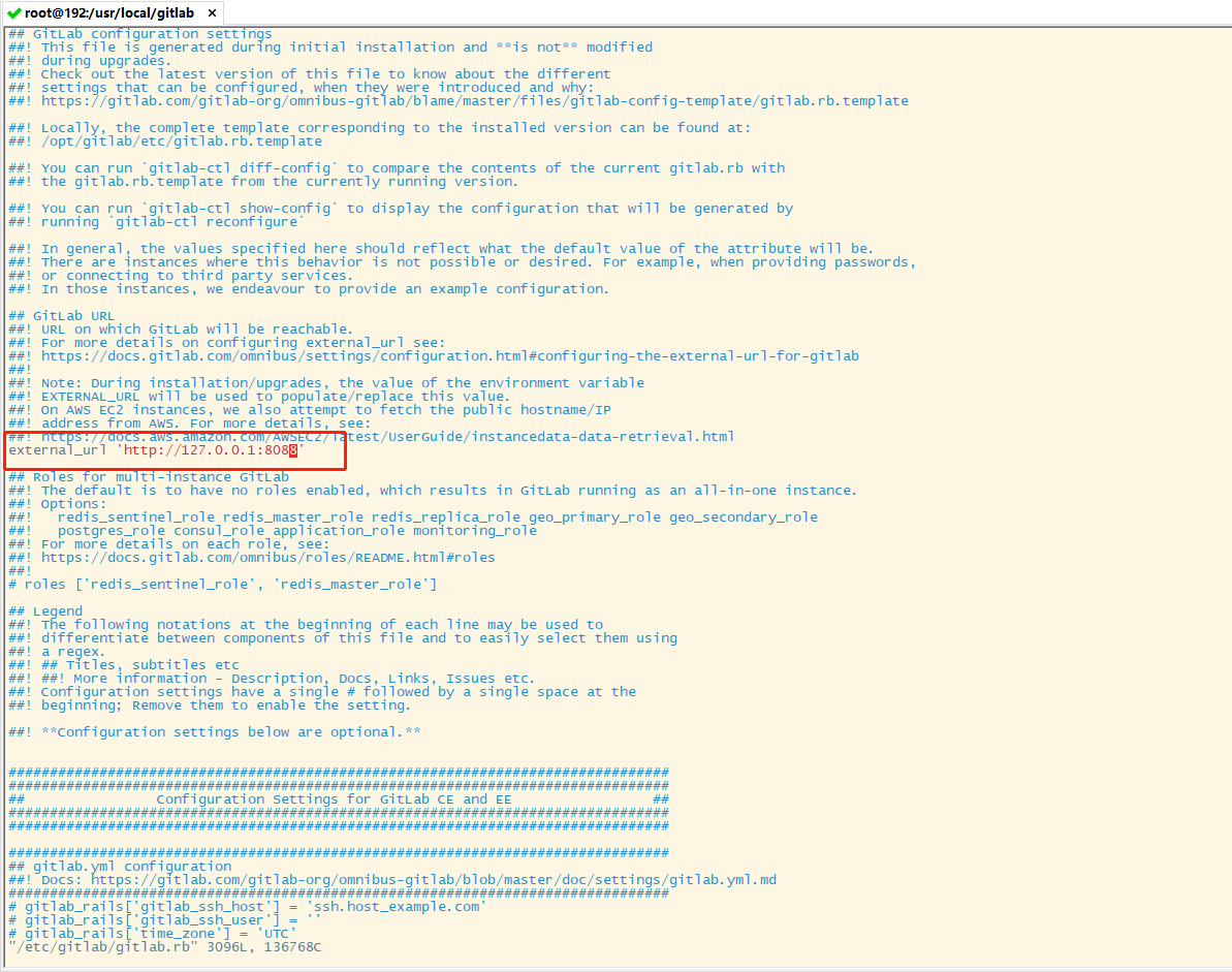 把external_url的值换成http://127.0.0.1:8088,端口号可以自己指定,这里指定8088,然后保存