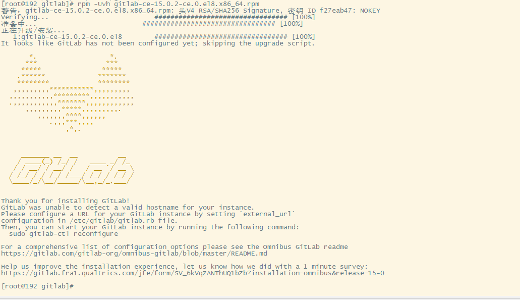 rpm -Uvh gitlab-ce-15.0.2-ce.0.el8.x86_64.rpm