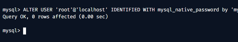 ALTER USER 'root'@'localhost' IDENTIFIED WITH mysql_native_password by 'mynewpassword';