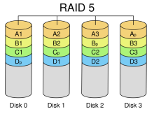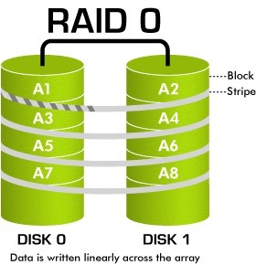 最初的RAID分成不同的等级,每种等级都有其理论上的优缺点,不同的等级在两个目标间取得平衡,分别是增加数据可靠性以及增加存储器(群)读写性能。这些年来,出现对于RAID观念不同的应用。常见的RAID有以下这些: